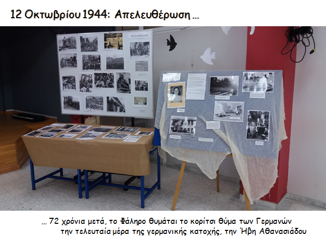 Με ευκαιρία την επέτειο της 28ης Οκτωβρίου 1940 διοργανώσαμε στο σχολείο έκθεση φωτογραφίας με εικόνες από την Αθήνα της περιόδου 1941-'44. Την Αθήνα της Κατοχής, της Αντίστασης και της Απελευθέρωσης.
